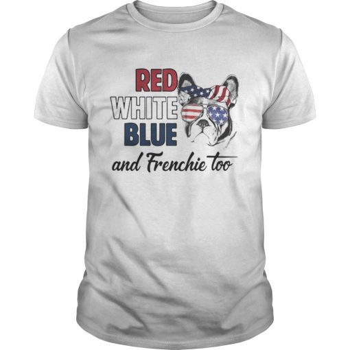 Pretty Red white blue and Frenchie too American flag shirt, hoodie, sweater, longsleeve and ladies t-shirt