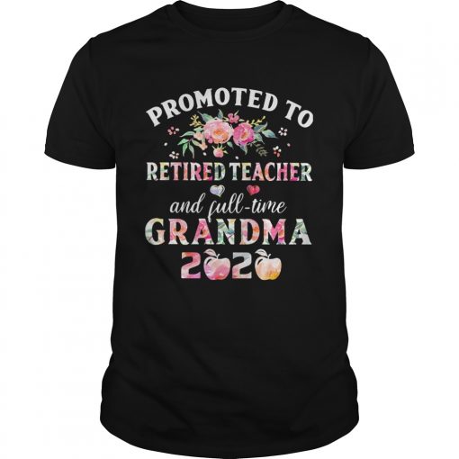 Promoted to retired teacher and full time grandma 2020 flower shirt, hoodie, sweater, longsleeve and ladies t-shirt
