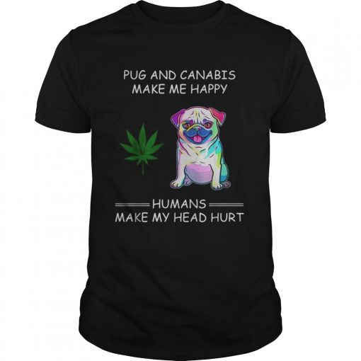 Pug and cannabis make me happy humans make my head hurt shirt, hoodie, sweater, longsleeve and ladies t-shirt