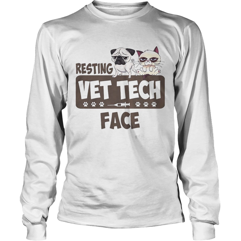 Pug and Grumpy resting vet tech face shirt, hoodie, sweater, longsleeve and ladies t-shirt