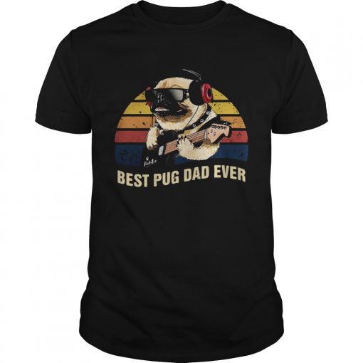 Pug Playing Music Best Pug Dad Ever Vintage shirt, hoodie, sweater, longsleeve and ladies t-shirt