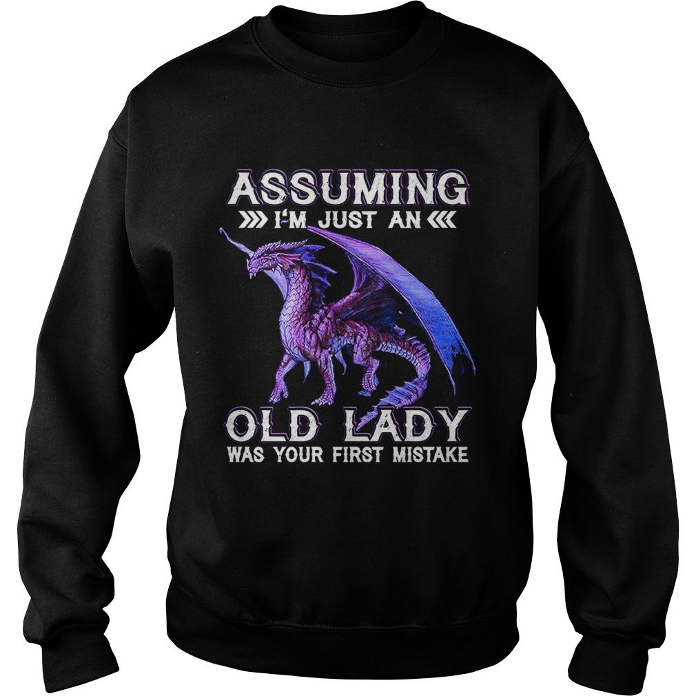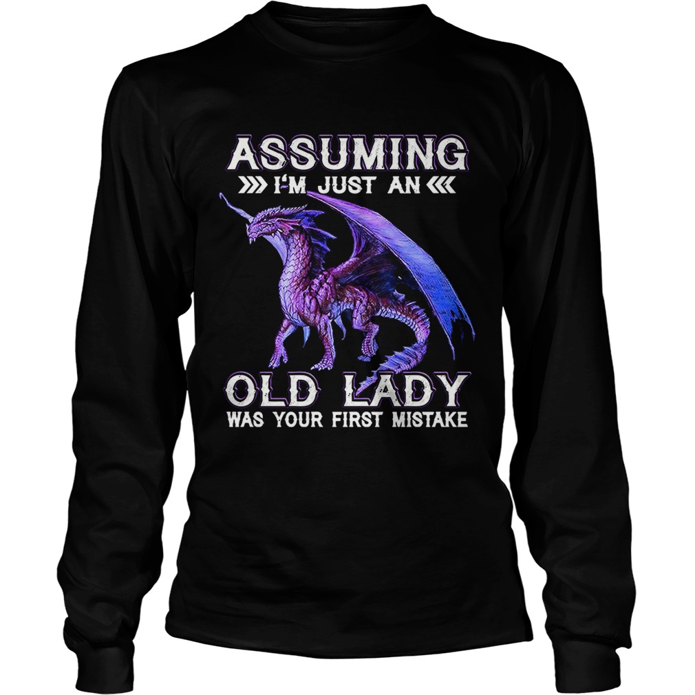 Purple dragon assuming Im just an old lady was your first mistake shirt, hoodie, sweater, longsleeve and ladies t-shirt
