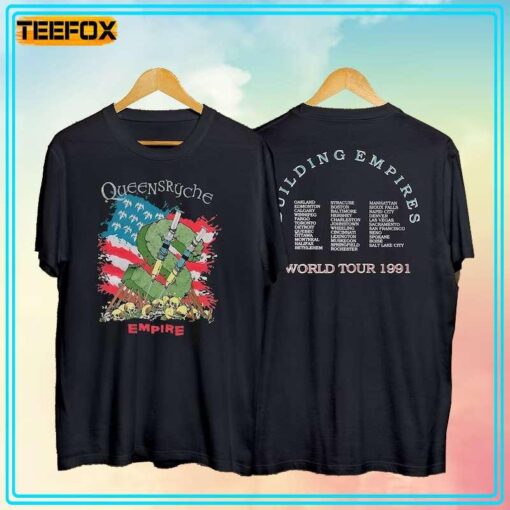 Embrace the essence of rock greatness and channel your inner rebel with the Queensryche Empire Building Empires Tour Pushead Short-Sleeve T-Shirt. Let the world know you’re a true rock aficionado with this unique piece that pays homage to one of Queensryche’s most iconic albums. The striking design and impeccable quality of this shirt make it a must-have for any fan looking to stand out from the crowd. Grab yours today and rock out in style while celebrating the legacy of a band that defined an era. Join the Empire Building Empires Tour in spirit and make a statement wherever you go. Upgrade your wardrobe with this legendary piece and let your inner rockstar shine!