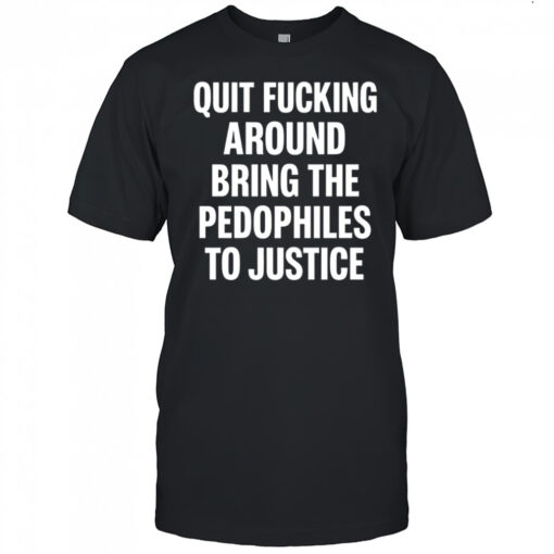 Quit fucking around bring the pedhophiles to justice letter shirt, hoodie, sweater, longsleeve and ladies t-shirt