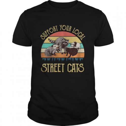 raccoon support your local street cats vintage retro shirt, hoodie, sweater, longsleeve and ladies t-shirt