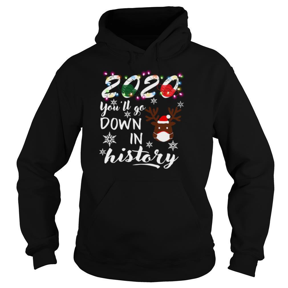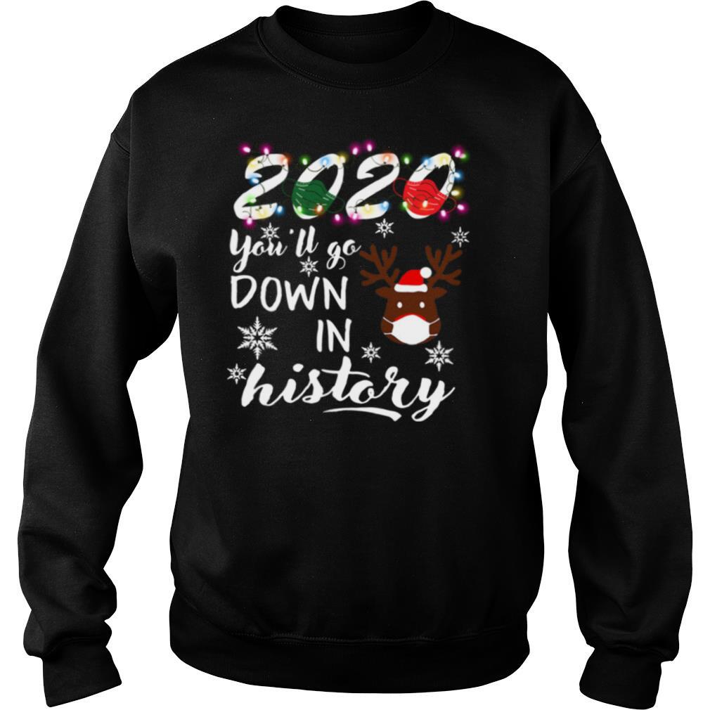 Reindeer face mask 2020 youll go down in history Christmas shirt, hoodie, sweater, longsleeve and ladies t-shirt