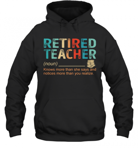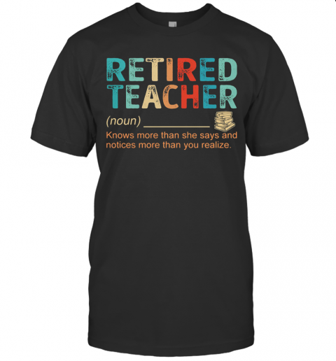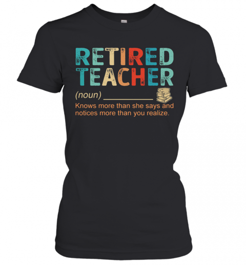 Retired Teacher Knows More Than She Says And Notices More Than You Realize T-Shirt, hoodie, sweater, longsleeve and ladies t-shirt