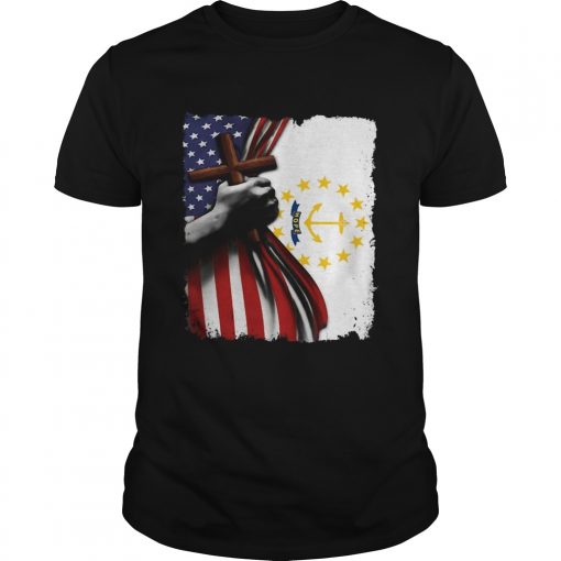 Rhode island american flag cross happy independence day shirt, hoodie, sweater, longsleeve and ladies t-shirt
