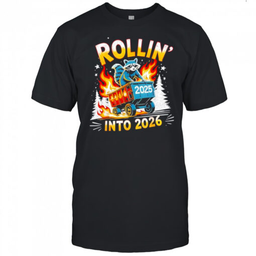 Rollin Into 2026 Funny Raccoon New Year Meme shirt, hoodie, sweater, longsleeve and ladies t-shirt