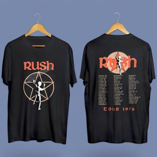 **Rush Tour 1976 Retro Shirt**: Relive the legendary Rush Tour of 1976 with this iconic retro shirt that screams rock ‘n’ roll nostalgia. This vintage-inspired design captures the essence of the era when Rush ruled the stage, delivering electrifying performances and timeless music. The shirt’s vibrant colors and intricate graphics transport you back to the golden age of rock concerts, where every note was a journey and every lyric a revelation. Whether you’re a die-hard fan who was there in ’76 or a modern music enthusiast looking to channel the spirit of classic rock, this shirt is a must-have addition to your wardrobe.