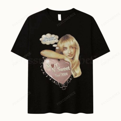Sabrina Carpenter Short N’ Sweet Album Harajuku Tee is not just a piece of clothing; it’s a statement of style and personality. This unique tee is a combination of trendy fashion and artistic expression inspired by Sabrina Carpenter’s music and the vibrant Harajuku street fashion scene. The design features a bold and colorful graphic print that captures the essence of Carpenter’s “Short N’ Sweet” album, making it a must-have for fans and fashion enthusiasts alike. Whether you’re heading to a concert, hanging out with friends, or simply want to add a pop of fun to your everyday look, this tee is the perfect choice.