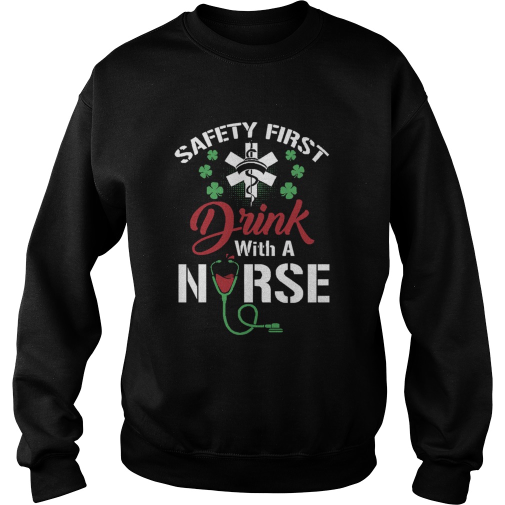 Safety First Drink With A Nurse Shirt St Patricks Day shirt, hoodie, sweater, longsleeve and ladies t-shirt