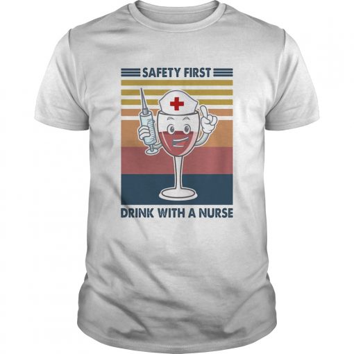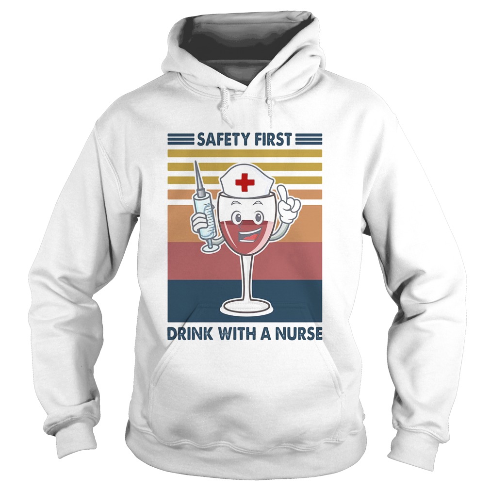 Safety first drink with a nurse wine vintage shirt, hoodie, sweater, longsleeve and ladies t-shirt