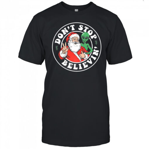 Santa and Alien don’t stop believin’ Christmas shirt, hoodie, sweater, longsleeve and ladies t-shirt