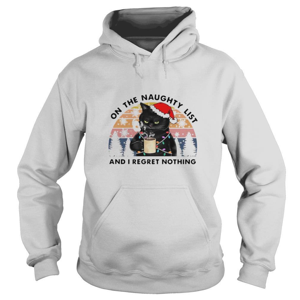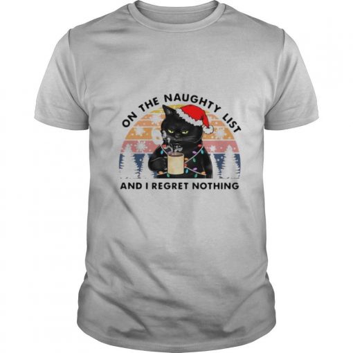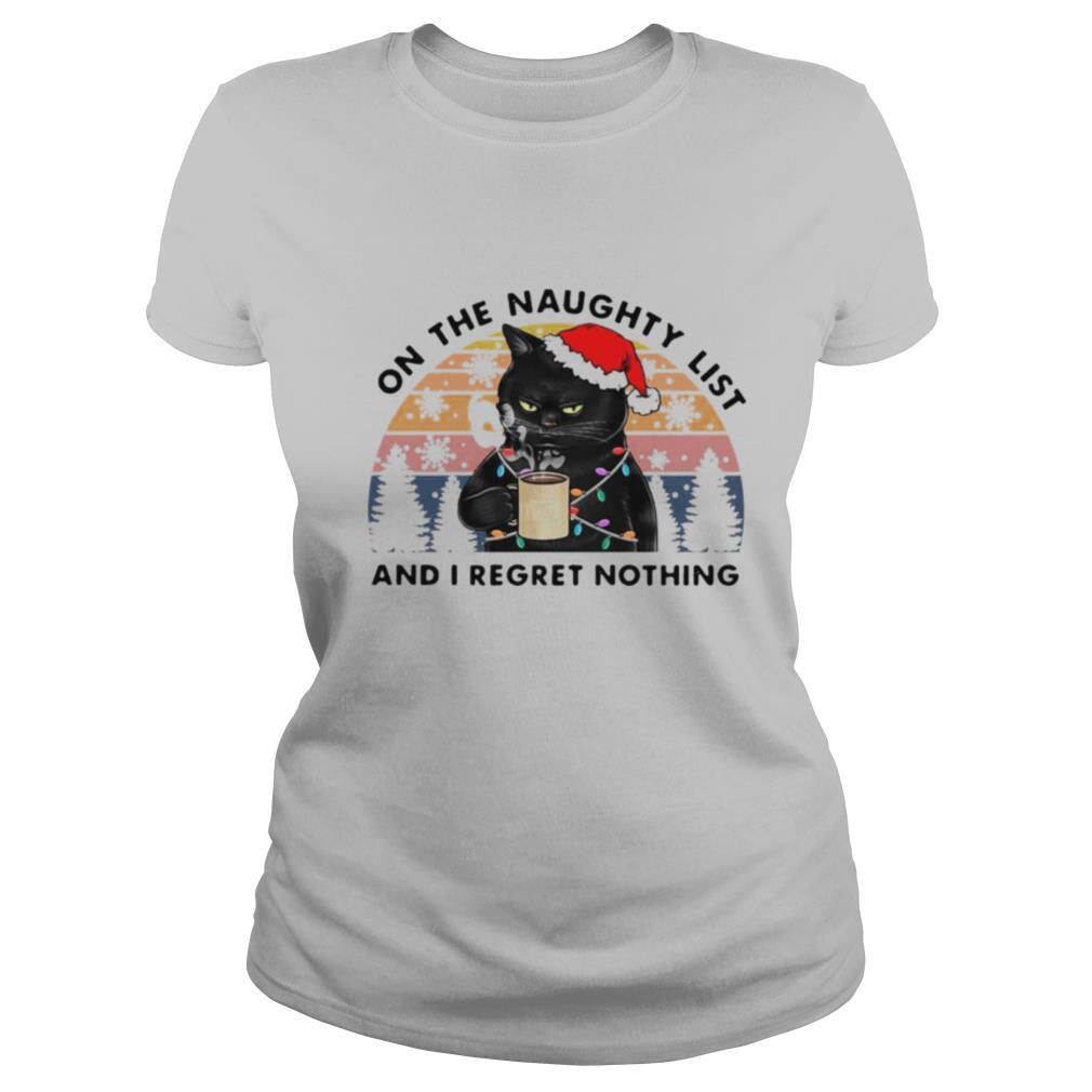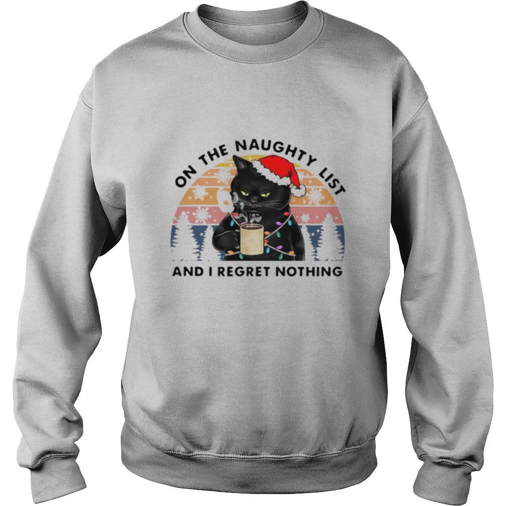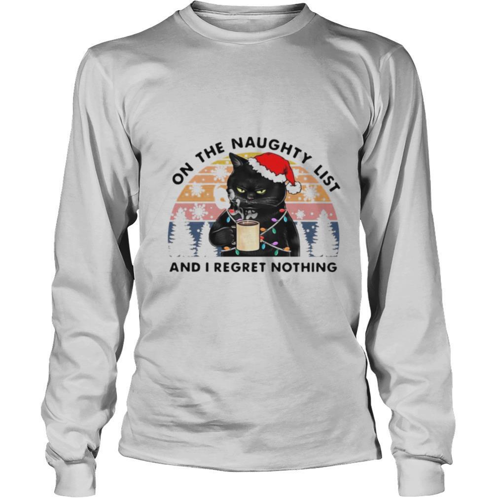 Buy Now: Santa Black Cat On The Naughty List And I Regret Nothing Vintage Retro shirt