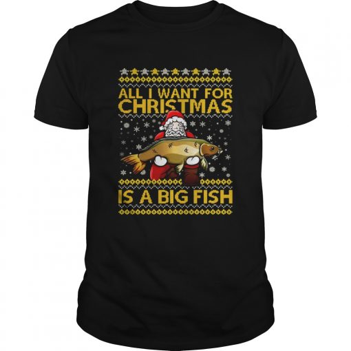 Santa Claus all I want for Christmas is a big fish shirt, hoodie, sweater, longsleeve and ladies t-shirt