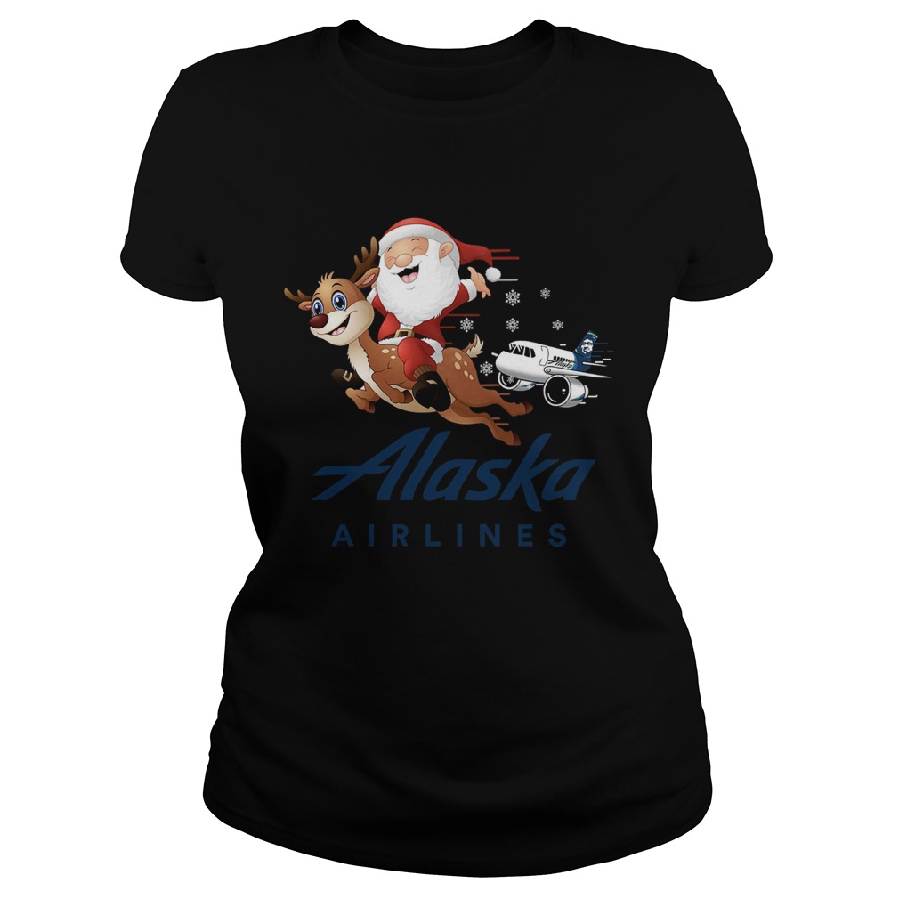 Santa Claus riding reindeer Alaska Airlines shirt, hoodie, sweater, longsleeve and ladies t-shirt
