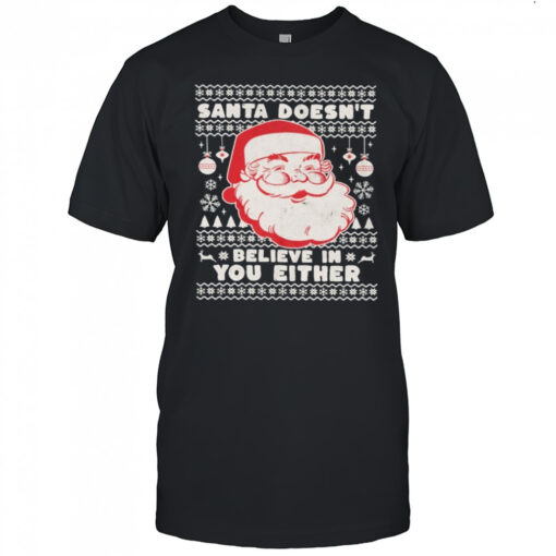 Santa Doesn’t Believe In You Either Ugly Holiday Christmas T-shirt, hoodie, sweater, longsleeve and ladies t-shirt