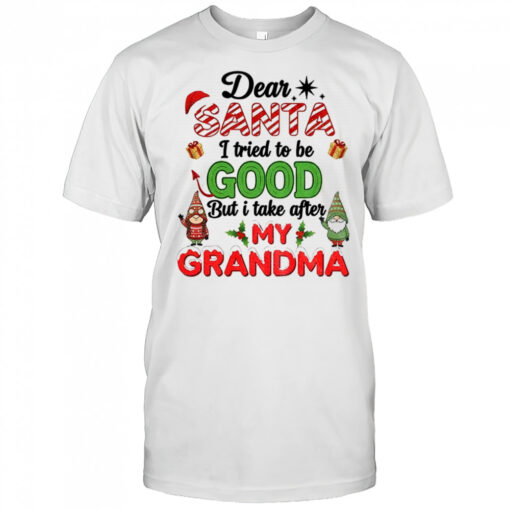 Santa Gnome dear Santa I tried to be good but I take after my grandma Christmas shirt, hoodie, sweater, longsleeve and ladies t-shirt