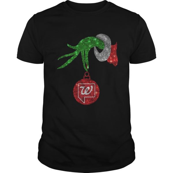 Santa Grinch holding Walgreen ornament Christmas shirt