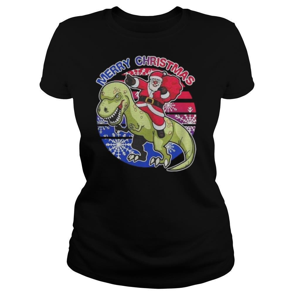Santa Riding Dinosaur Merry Christmas shirt, hoodie, sweater, longsleeve and ladies t-shirt