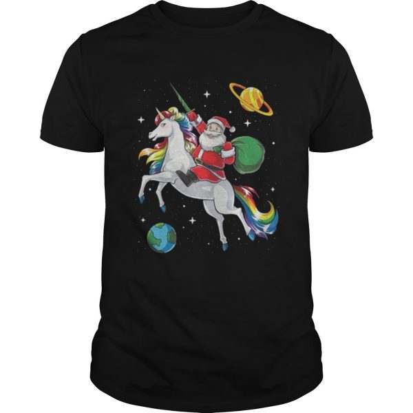 Santa riding Unicorn in space Christmas shirt
