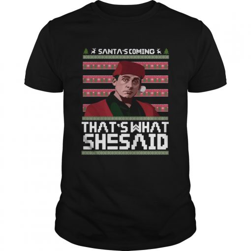 Santas coming thats what she said ugly christmas shirt, hoodie, sweater, longsleeve and ladies t-shirt