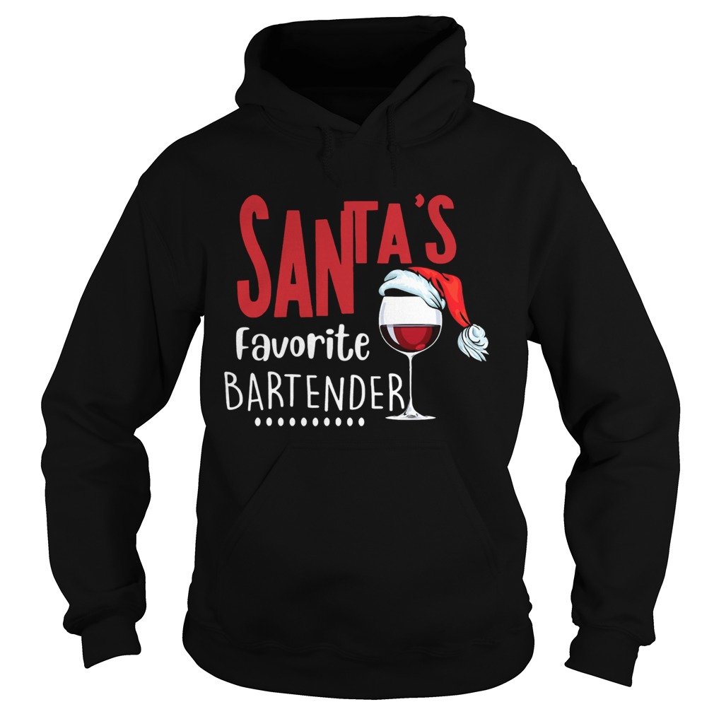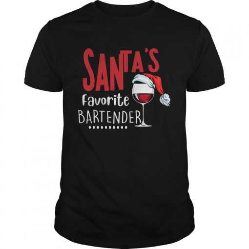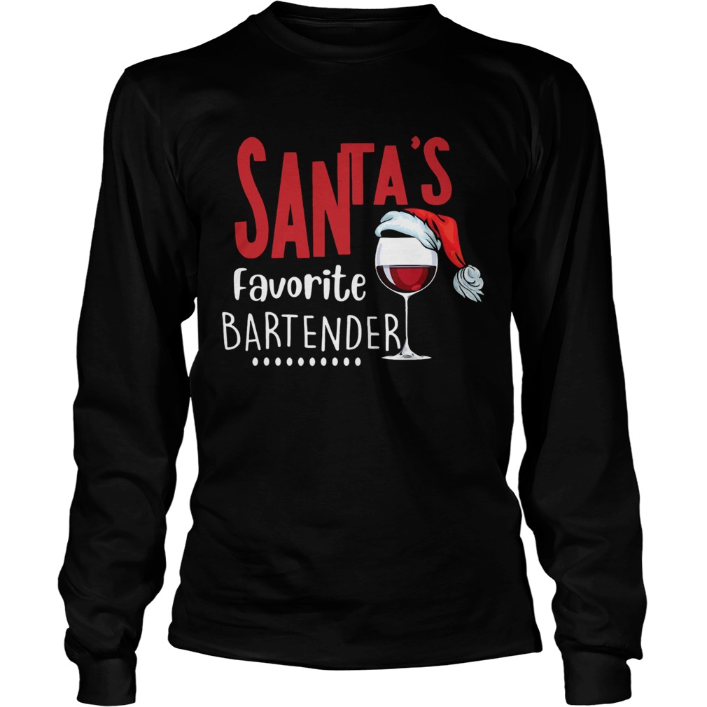 Santas Favorite Bartender Glass Wine Santa Hat Christmas shirt, hoodie, sweater, longsleeve and ladies t-shirt