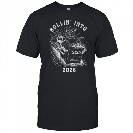 Sarcastic Cowboy Rollin Into 2026 Raccoon Dumpster Fire Snarky New Year shirt, hoodie, sweater, longsleeve and ladies t-shirt