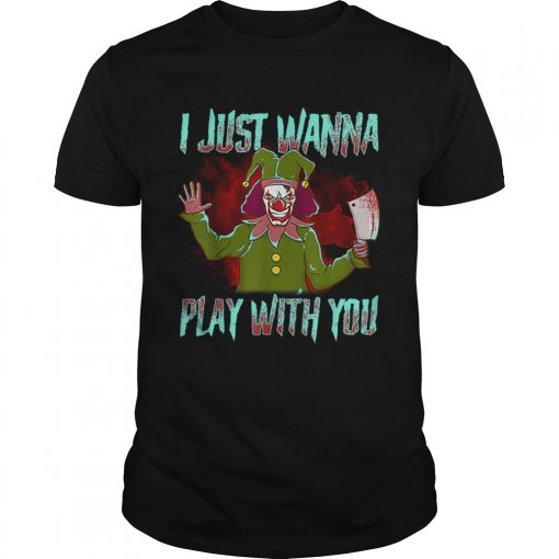 Scary Halloween clown I just wanna play with you shirt, hoodie, sweater, longsleeve and ladies t-shirt