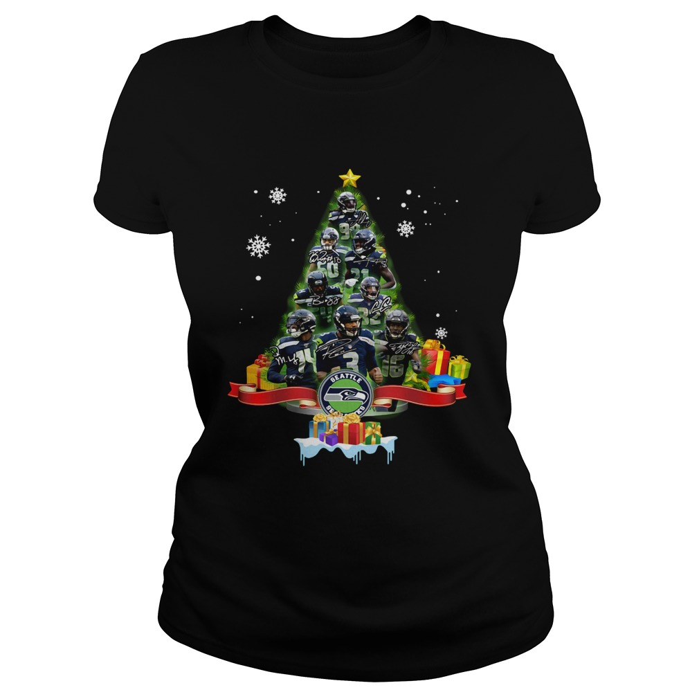 Seattle Seahawks Football Players Signatures Tree Christmas shirt, hoodie, sweater, longsleeve and ladies t-shirt