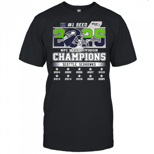Seattle Seahawks NFC West Champions 2025 2026 seed 1 helmet logo shirt, hoodie, sweater, longsleeve and ladies t-shirt