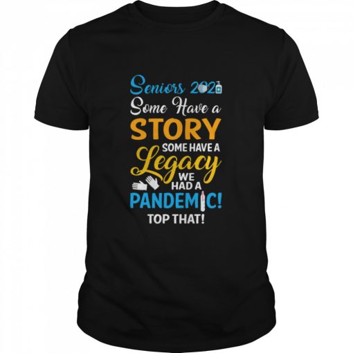 Seniors 2021 some have a story some have a legacy we had a pandemic top that shirt, hoodie, sweater, longsleeve and ladies t-shirt