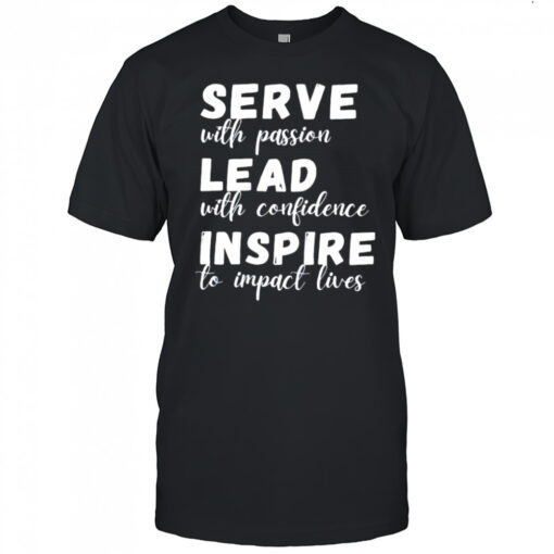 SERVE with passion LEAD with confidence INSPIRE to impact lives shirt, hoodie, sweater, longsleeve and ladies t-shirt