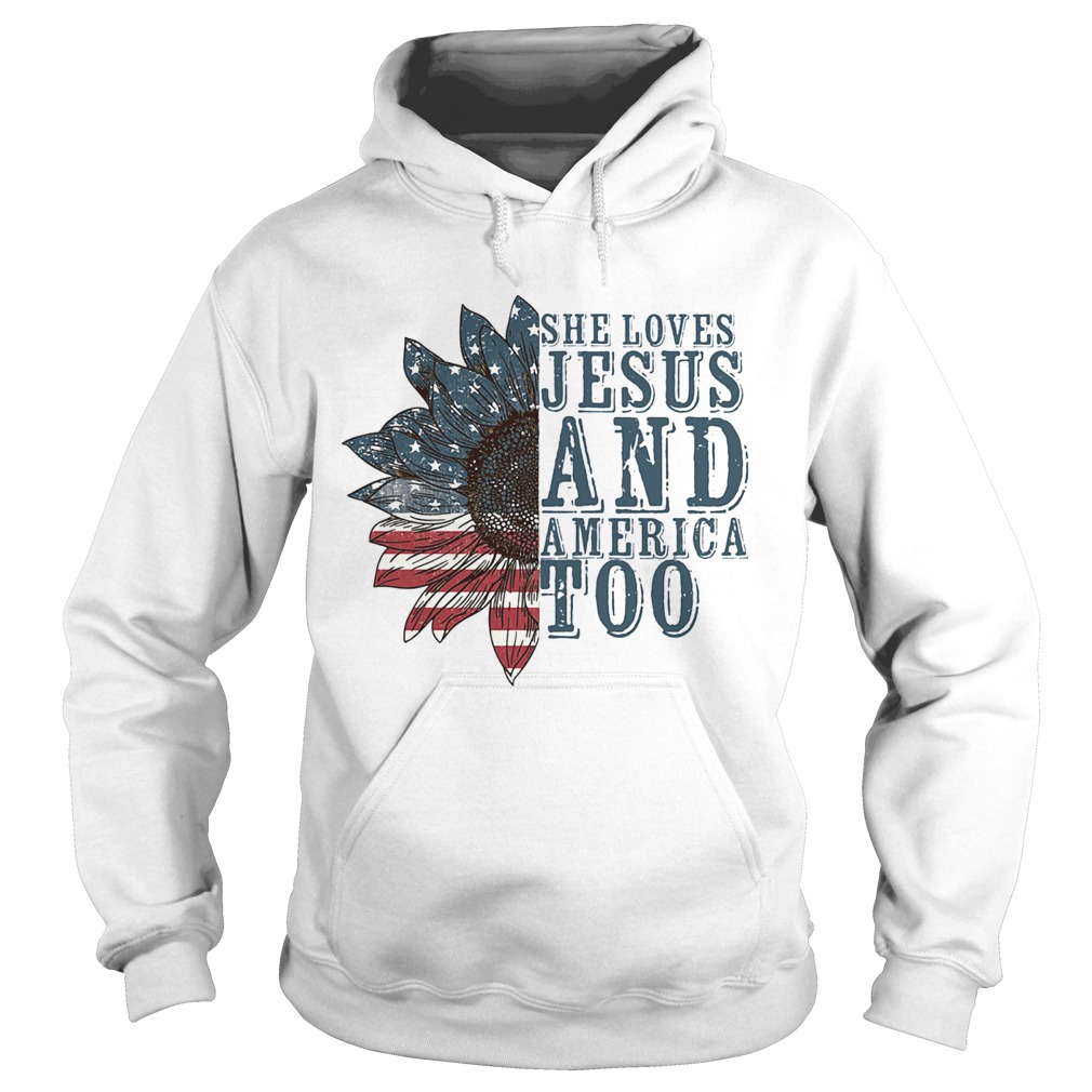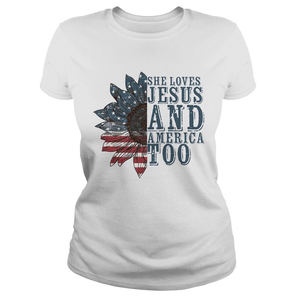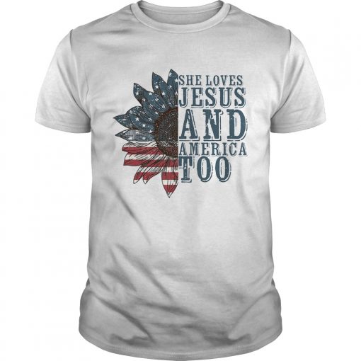 She Loves Jesus And America Too Sunflower 14th of July Independence Day shirt, hoodie, sweater, longsleeve and ladies t-shirt