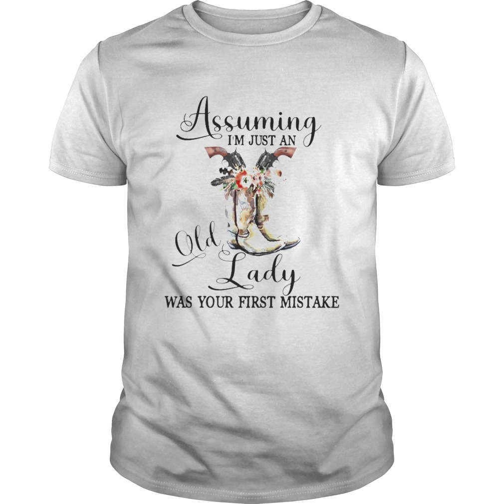 Shoes Assuming Im just an old Lady was your first mistake shirt, hoodie, sweater, longsleeve and ladies t-shirt