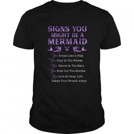 Signs you might be a mermaid drink like a fish play in the wavves dance in the rain bide out the st, hoodie, sweater, longsleeve and ladies t-shirt