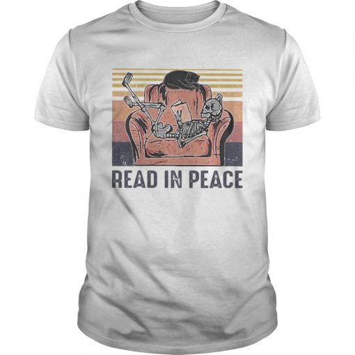 Skeleton Cat Read in peace vintage retro shirt, hoodie, sweater, longsleeve and ladies t-shirt