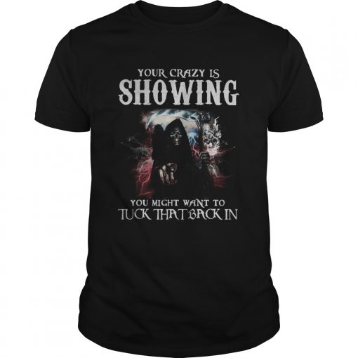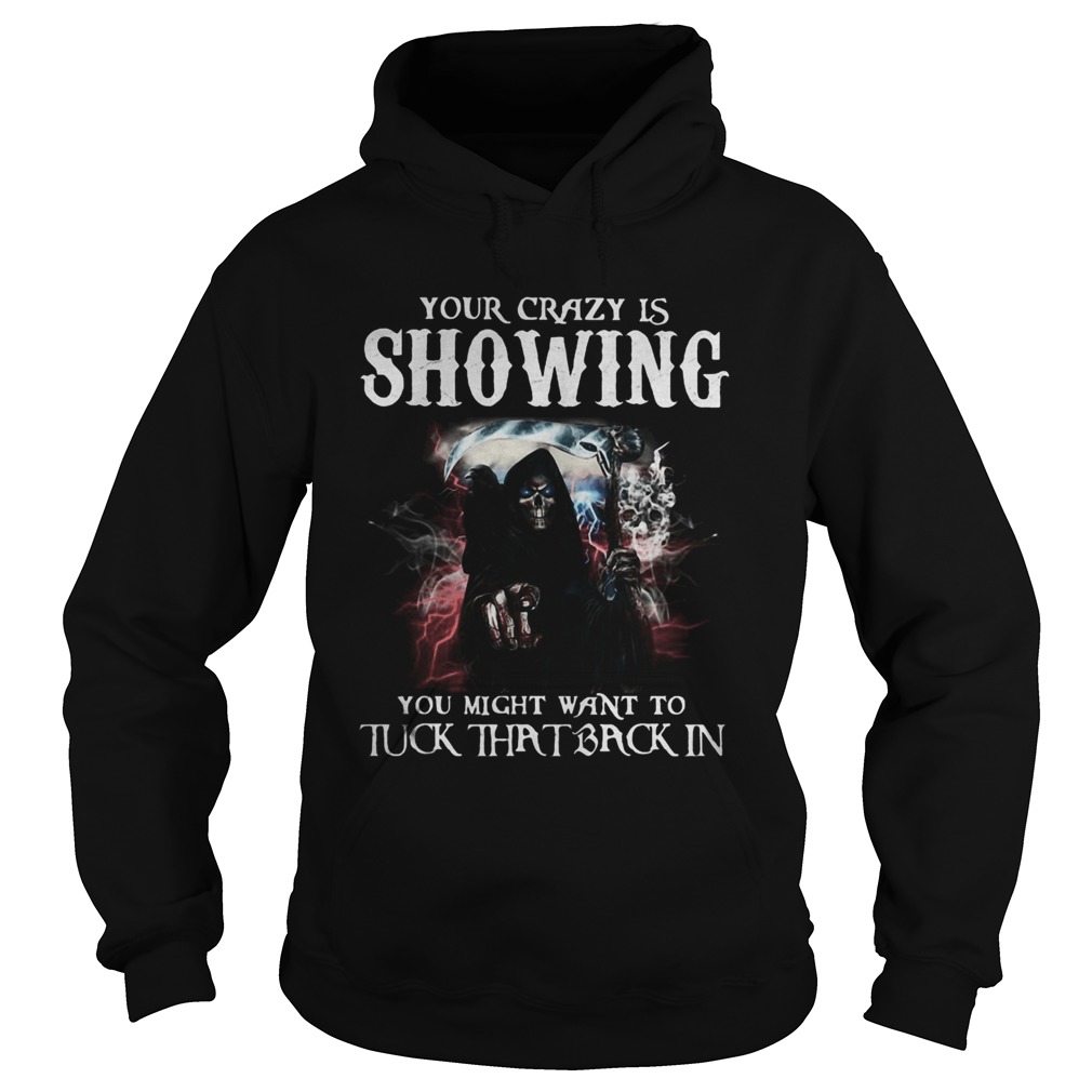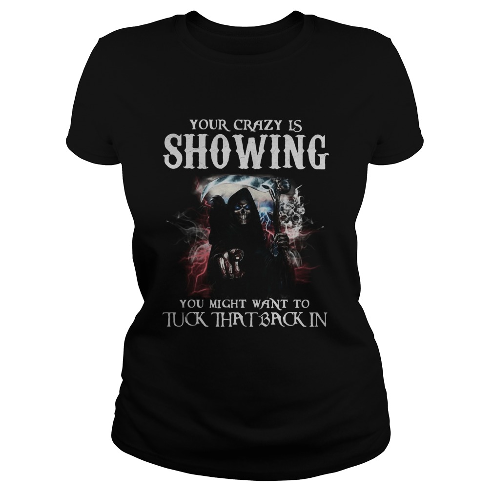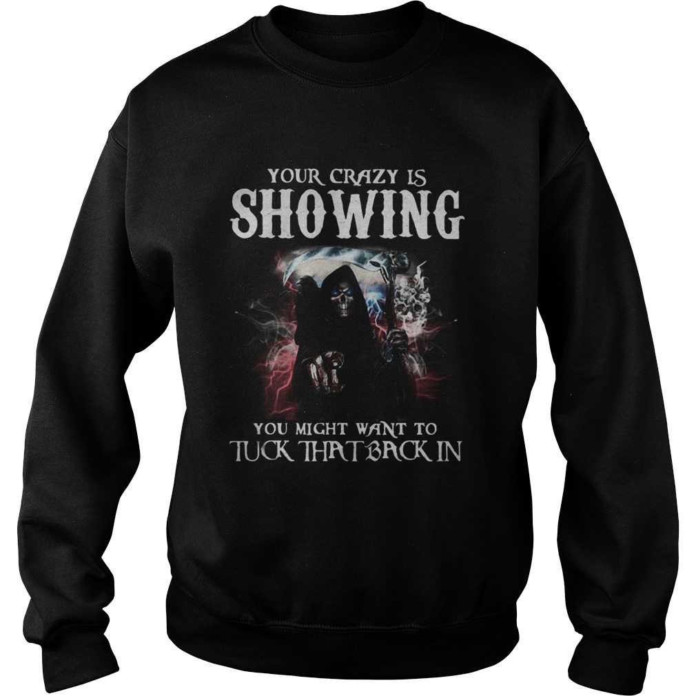 Skeleton death your crazy is showing you might want to tuck that back in shirt, hoodie, sweater, longsleeve and ladies t-shirt