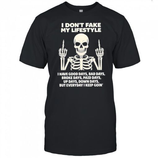 Skeleton i don’t fake my lifestyle but everyday i keep goin’ shirt, hoodie, sweater, longsleeve and ladies t-shirt
