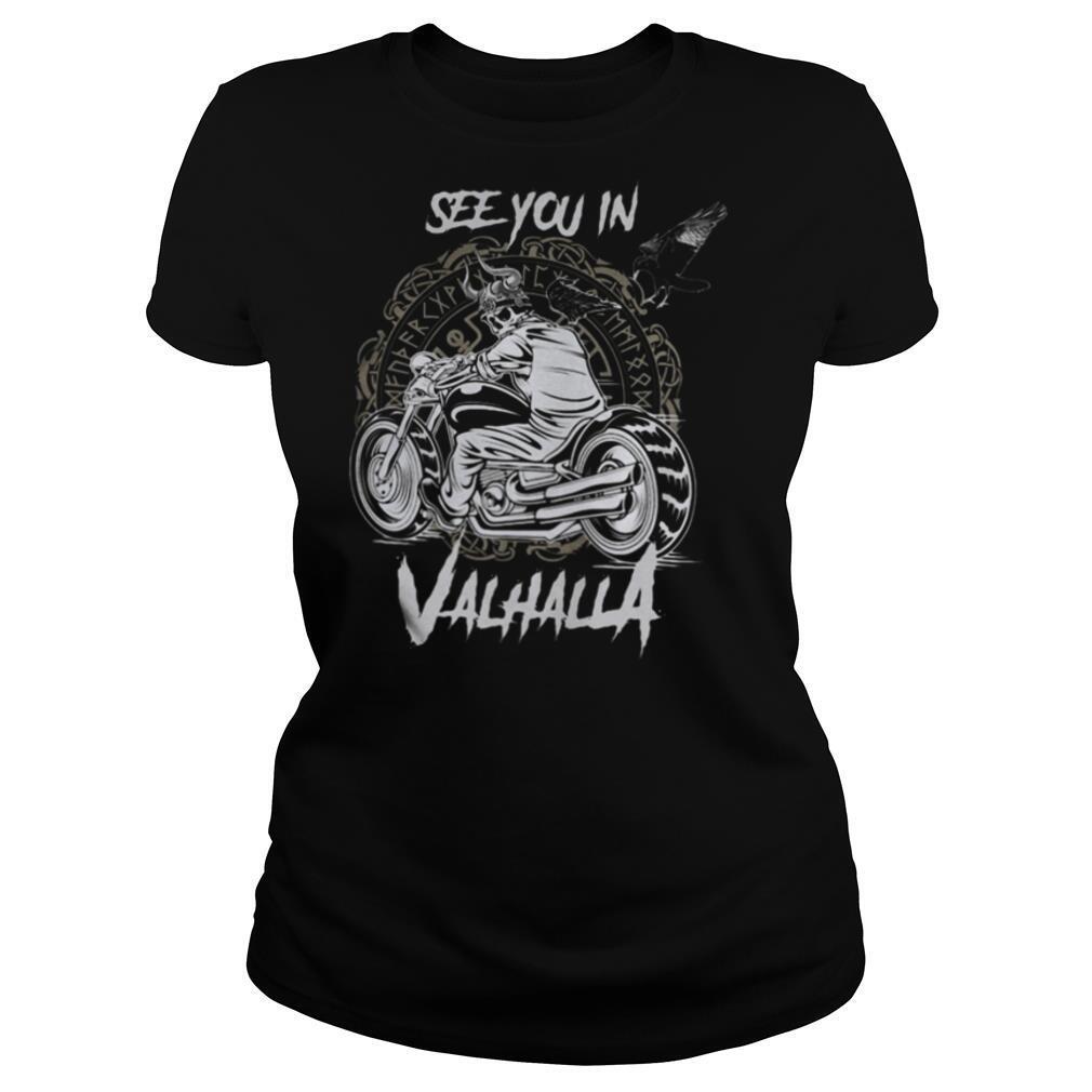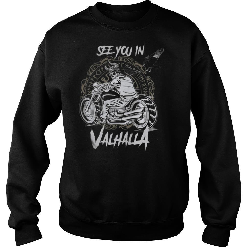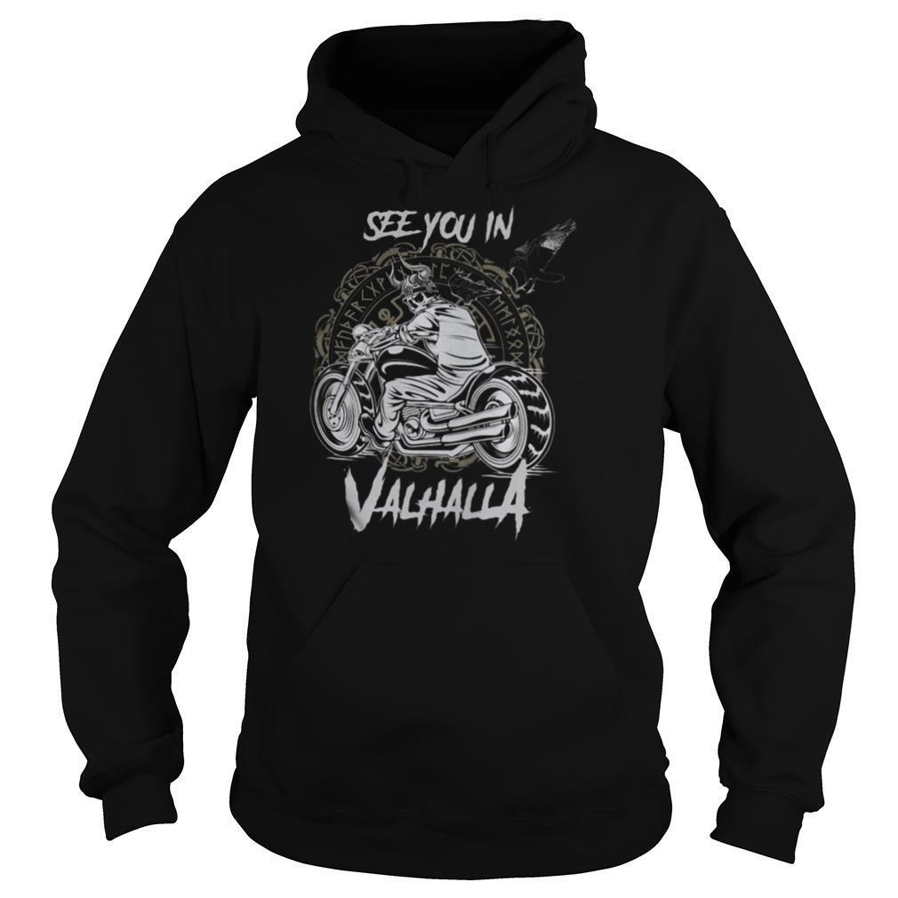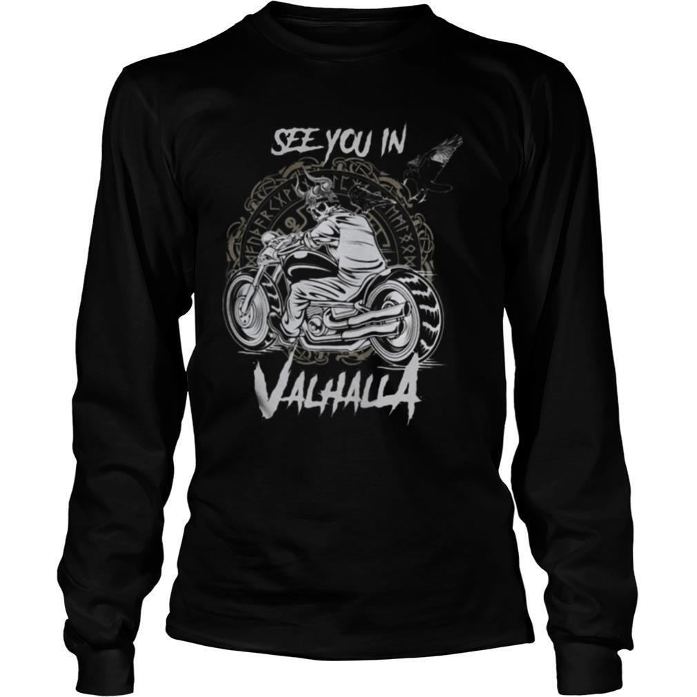 Skeleton riding motorcycle see you in valhalla shirt, hoodie, sweater, longsleeve and ladies t-shirt