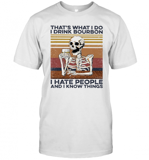 Skeleton That’S What I Do I Drink Bourbon I Hate People And I Know Things Vintage Retro T-Shirt, hoodie, sweater, longsleeve and ladies t-shirt