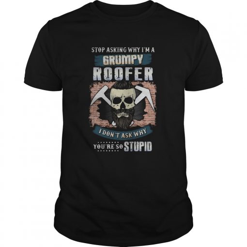 Skull beard stop asking why im a grumpy roofer i dont ask why youre stupid shirt, hoodie, sweater, longsleeve and ladies t-shirt