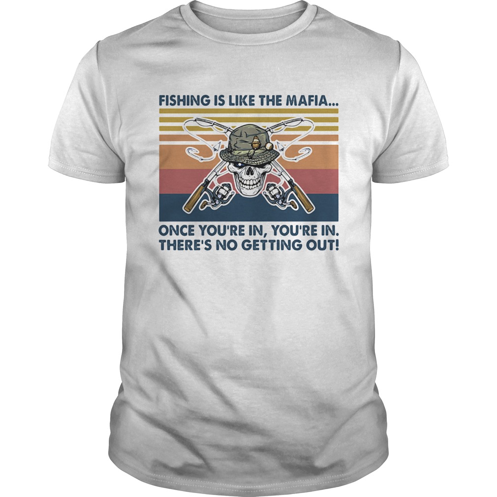 Skull fishing is like the mafia once youre in theres no getting out vintage retro shirt, hoodie, sweater, longsleeve and ladies t-shirt