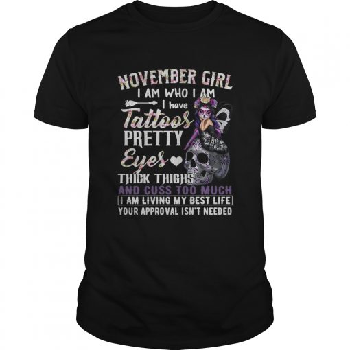 Skull Girl November Girl Im Who I Am I Have Tattoos Pretty Eyes shirt, hoodie, sweater, longsleeve and ladies t-shirt