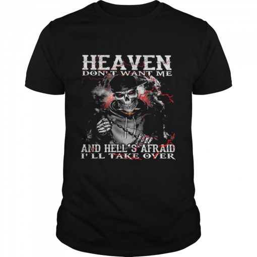 Skull heaven dont want me and hells afraid Ill take over shirt, hoodie, sweater, longsleeve and ladies t-shirt