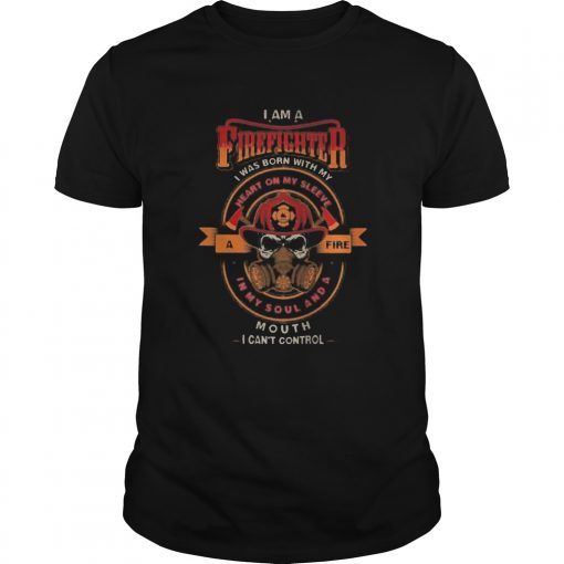 Skull i am a firefighter i was born with my heart on my sleeve a fire in my soul and a mouth i can, hoodie, sweater, longsleeve and ladies t-shirt