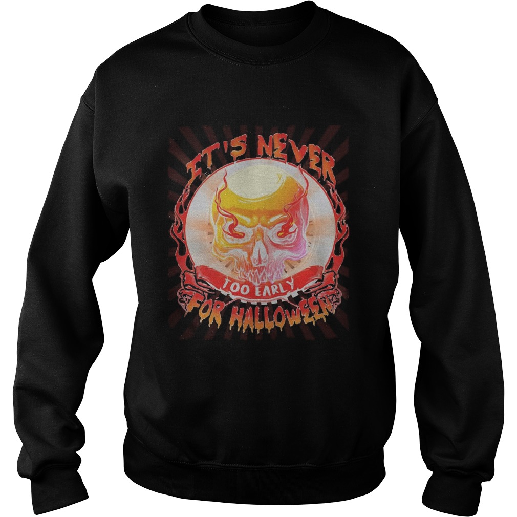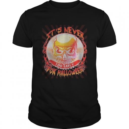 Skull its never too early for halloween shirt, hoodie, sweater, longsleeve and ladies t-shirt