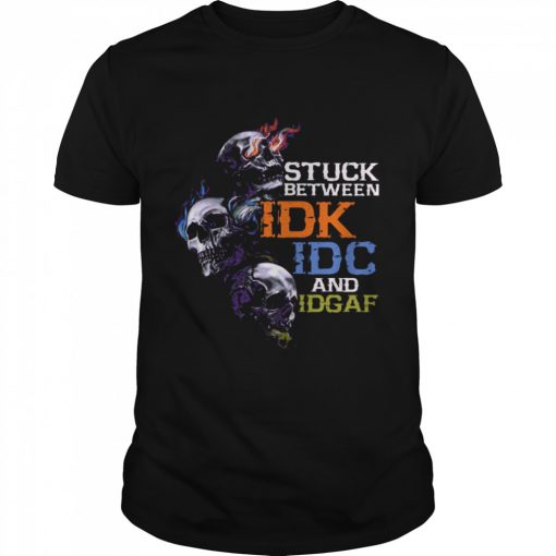 Skull Stuck Between IDK IDC And Idgaf shirt, hoodie, sweater, longsleeve and ladies t-shirt