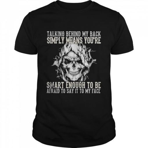 Skull talking behind my back simply means youre smart enough to be afraid to say it to my face shirt, hoodie, sweater, longsleeve and ladies t-shirt